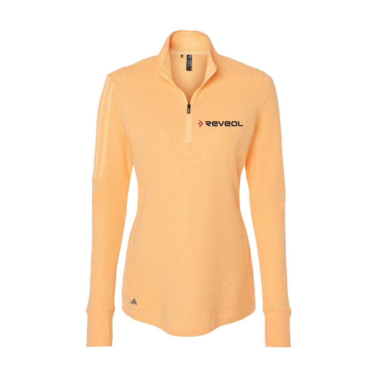 The Adidas Women's 3-Stripes Quarter-Zip Sweater A555 features moisture-management properties for ultimate comfort. The stand-up collar and tonal 3-stripes on the right sleeve add a touch of style, while the custom screen print adds a personalized touch. Made with 53% cotton and 47% recycled polyester, this sweater is a eco-friendly option for your wardrobe.