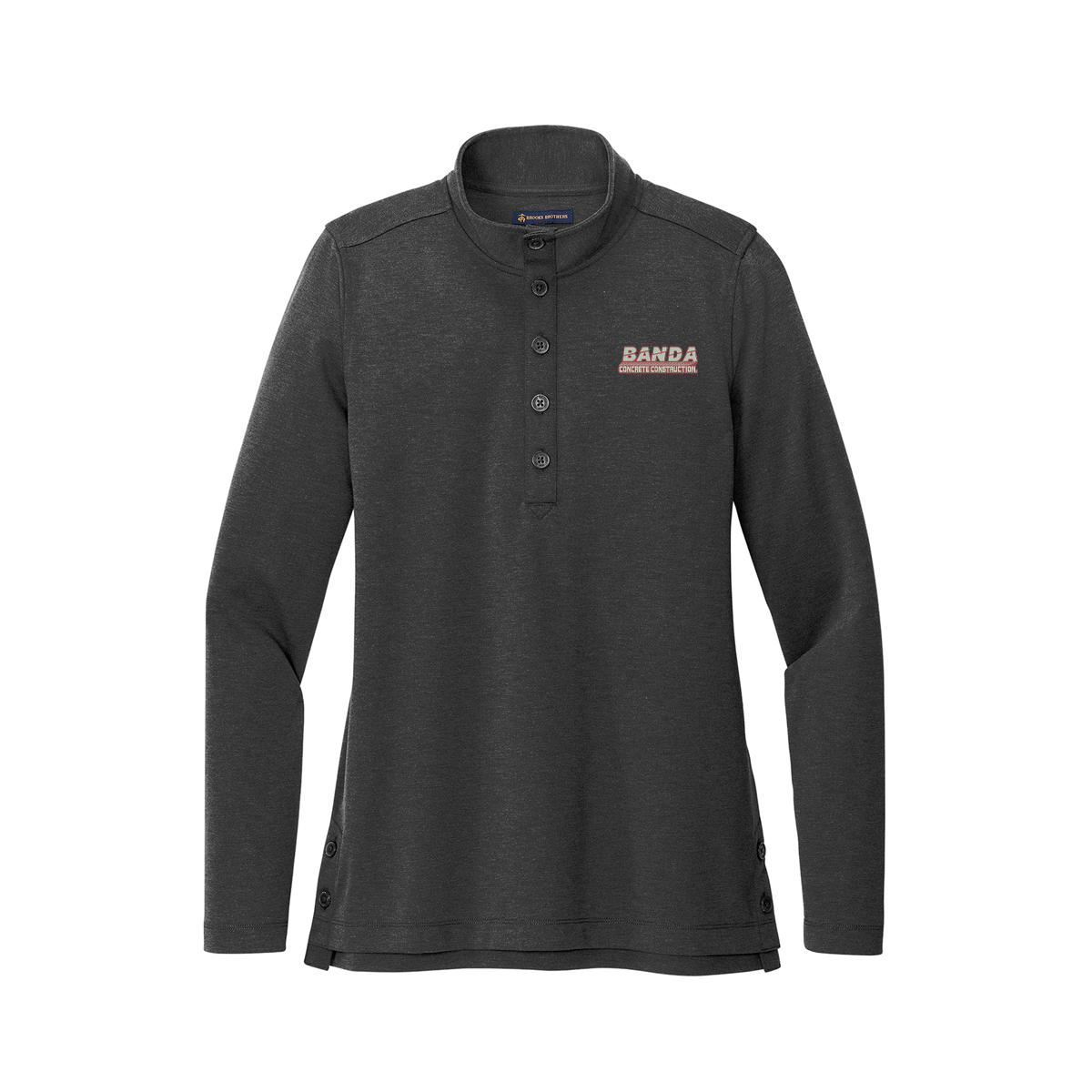 Expertly crafted with a stretch double-knit fabric blend of 76% polyester, 22% rayon, and 2% spandex, this Brooks Brothers® Women’s Mid-Layer is both comfortable and functional. With a sleek cadet collar, faux horn buttons displaying the iconic Brooks Brothers logo, and an inverted box pleat at the back yoke, this versatile top is perfect for any occasion. Add a personal touch with custom embroidery.