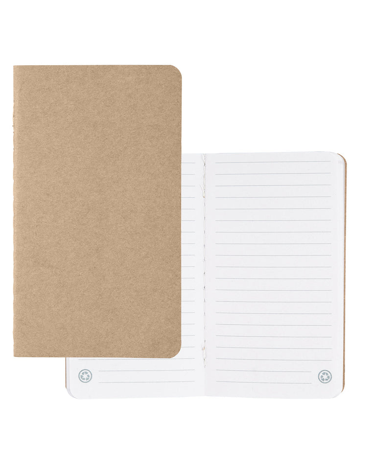 - Pocket-sized notebook with lightweight cardboard cover, stapled binding
