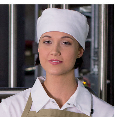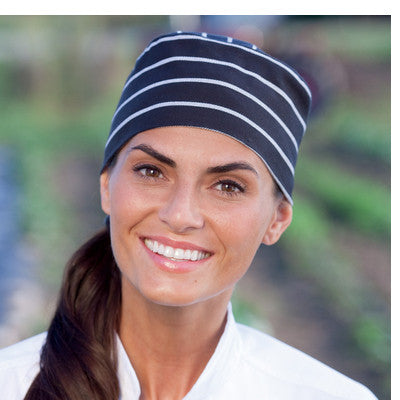 Cool and comfortable. This practical headgear with an elastic back that fits everyone is a great alternative to a traditional chef hat.
