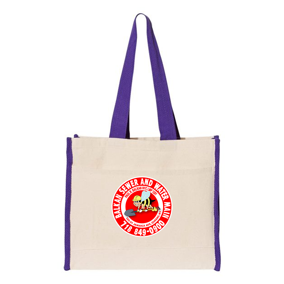 100% Cotton Heavy Canvas tote bag with front pocket full side and bottom gusset.