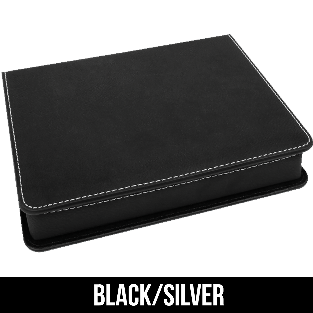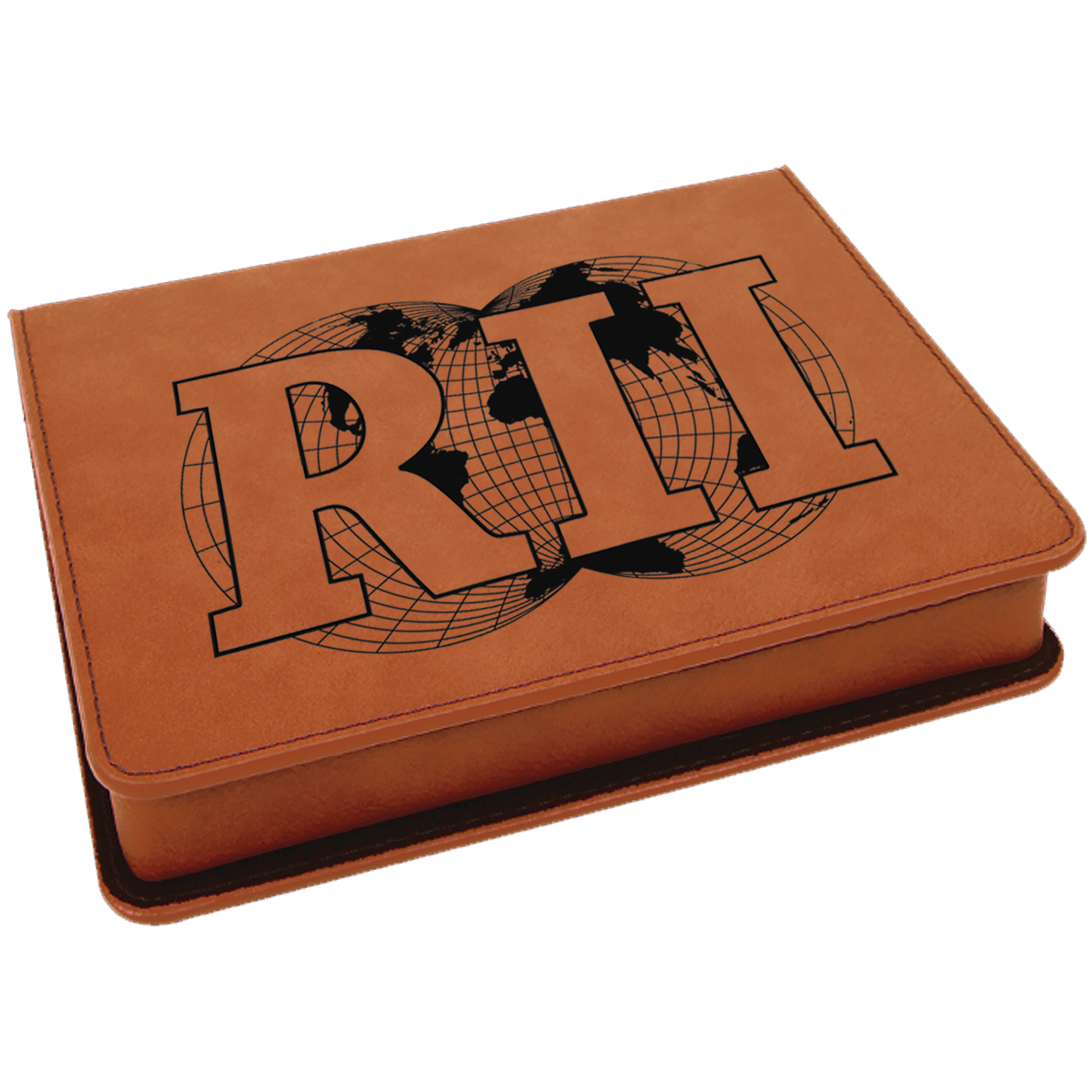Product Information: Max personalization size of 6 1/4"(L) x 4 3/4"(W). Made out of Faux Leather / Bamboo / Foam / Cardboard that is 7"(L) x 5 1/2"(W) x 1 1/4"(H) in size.