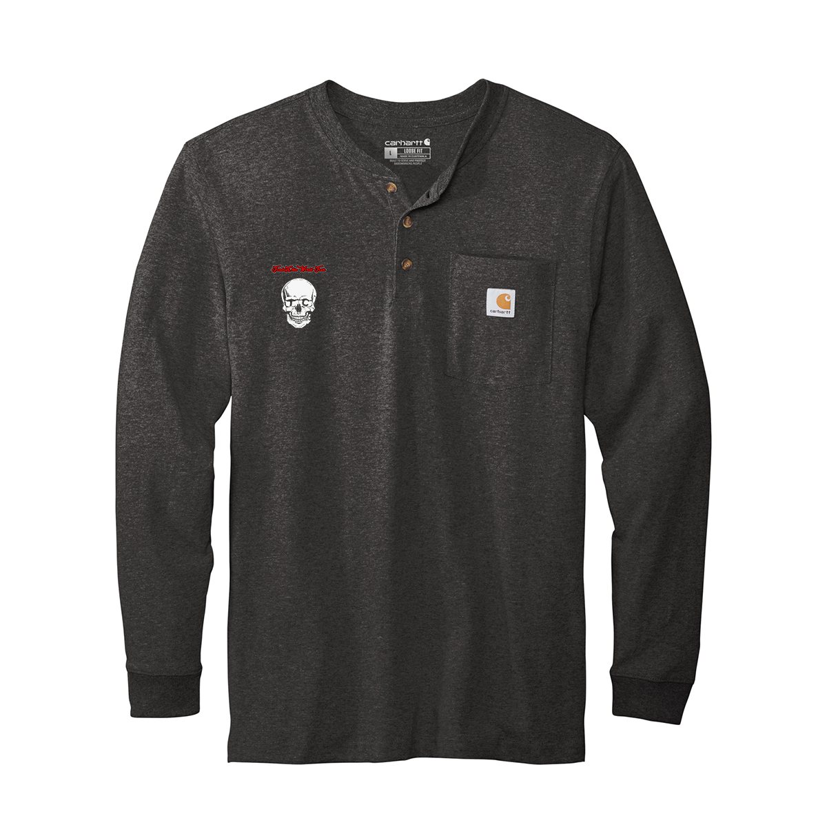 Carhartt label sewn on left chest pocket