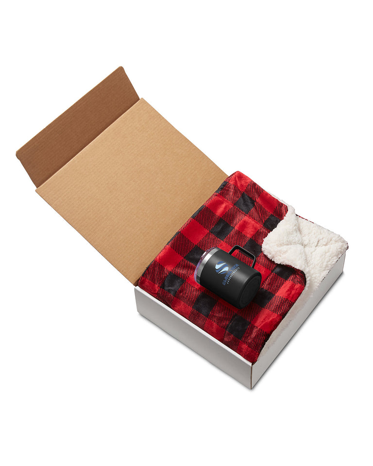 - Gift set includes our OD304 Micro Mink Sherpa Blanket and MG407 12 oz. Vacuum Insulated Coffee Mug with Handle in individual mailer gift box